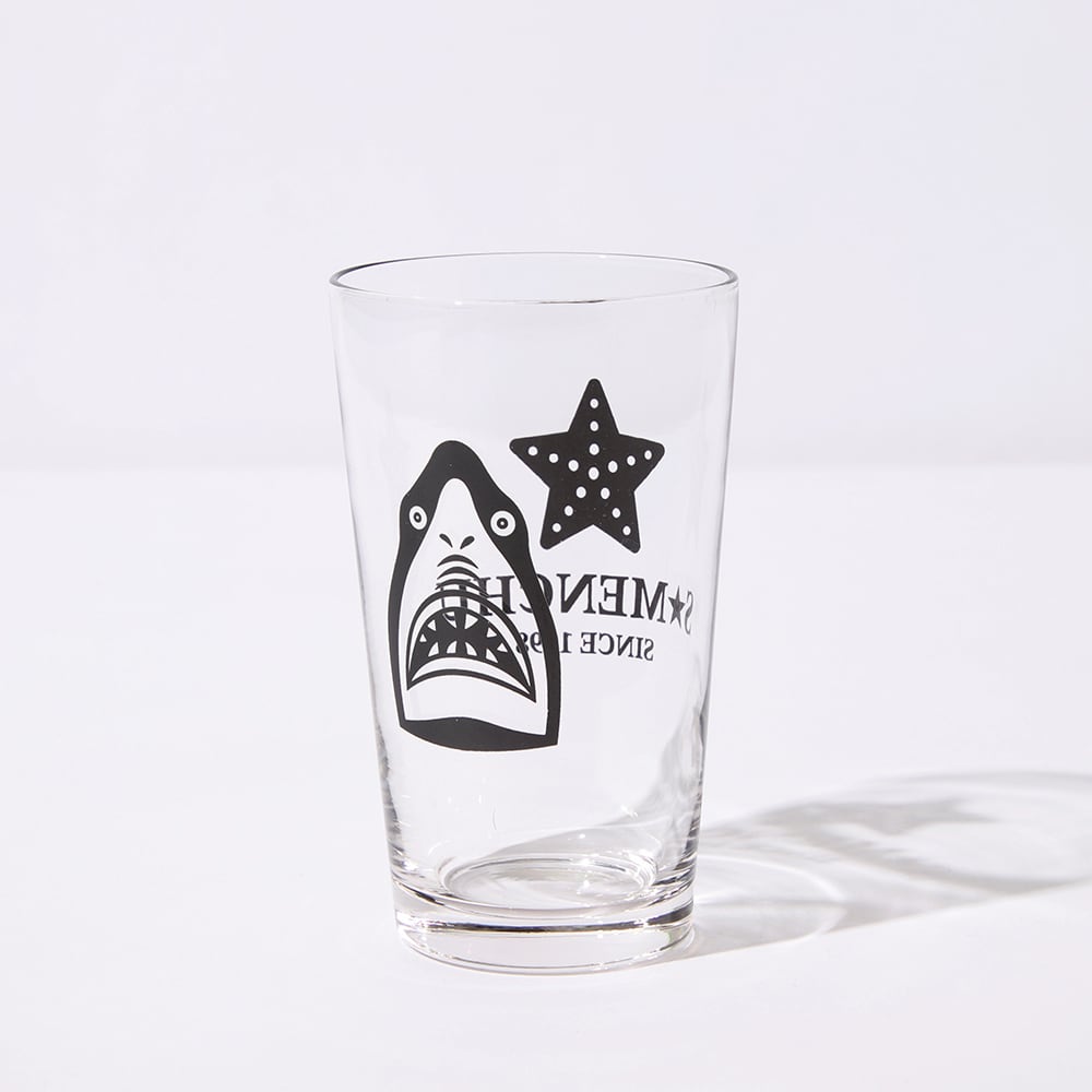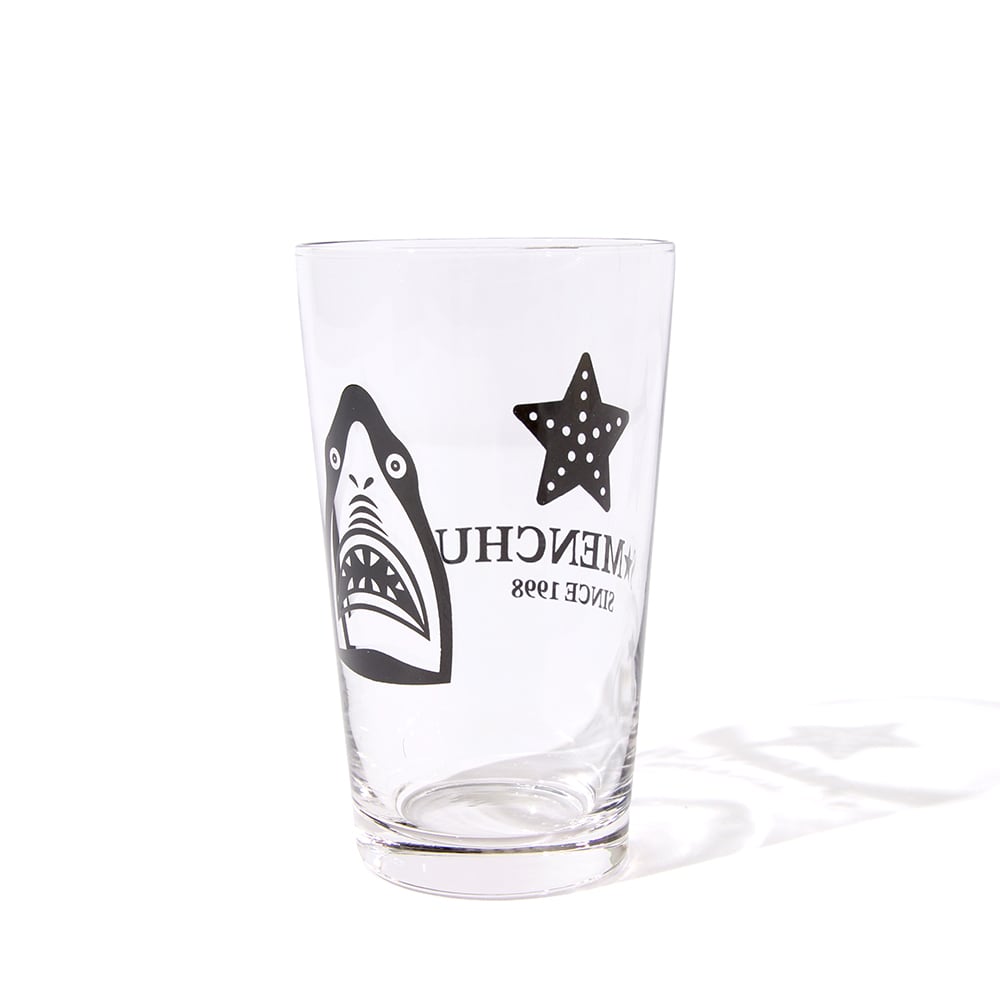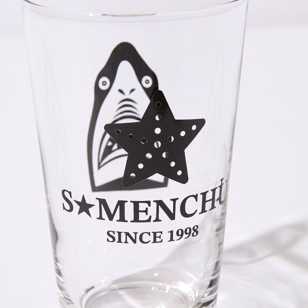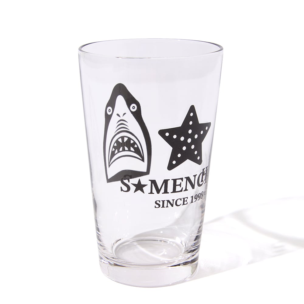 鮫人デザインのグラス。 後ろの黒星はヒトデさん。 夏だね★ サイズ:11×6.5cm(高さ×口径) 容量:235ml(満水)