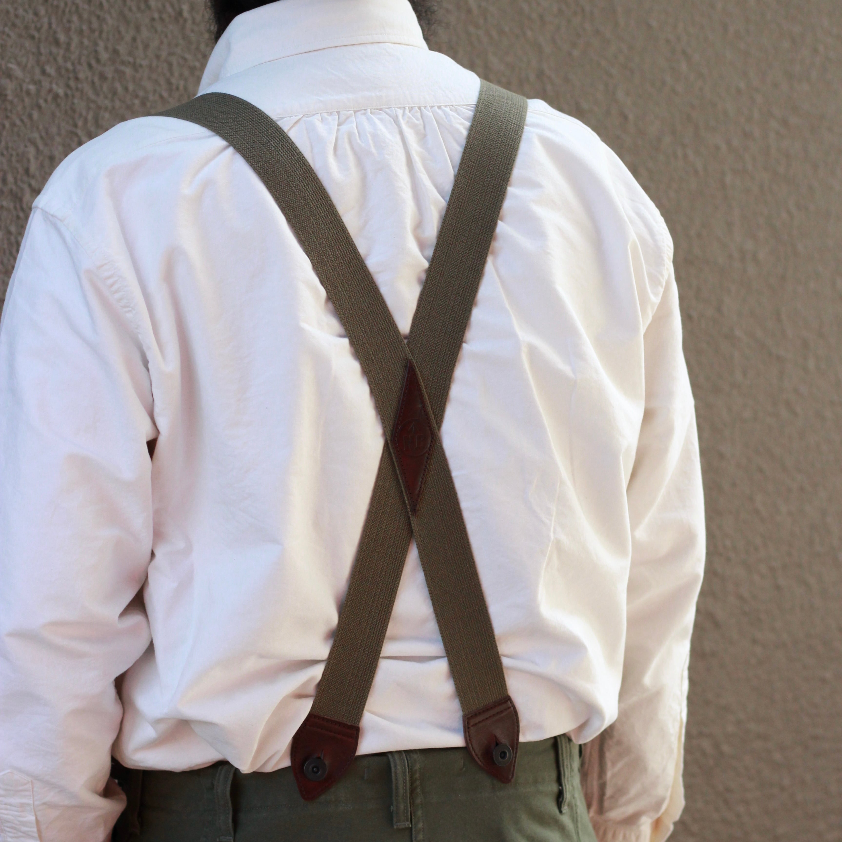 ナイジェル・ケーボンのサスペンダーボタンが付属するすべてのパンツに装着可能。